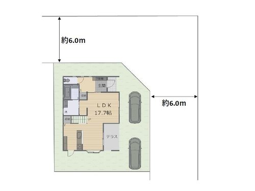 【駐車場イメージ図】縦列で2台駐車可能です。前面道路が6mなので苦手な方も駐車は楽々です♪