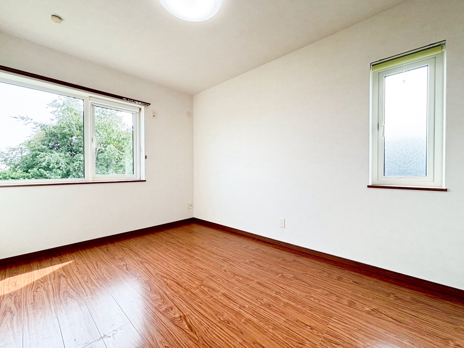 【天井・壁クロス張替えで綺麗になりました】 1階6帖の洋室です。 ホワイトベージュで優しい色合いのお部屋です。 子供部屋や主寝室にピッタリです。 夏は1階の方が涼しく就寝できますよ。
