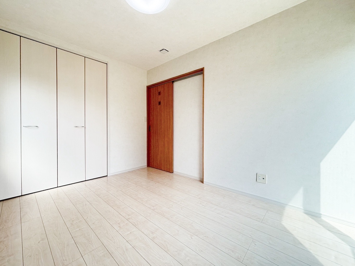 【天井・壁クロス張替えで綺麗になりました】 1階6帖の洋室です。 ホワイトベージュで優しい色合いのお部屋です。 子供部屋や主寝室にピッタリです。 クローゼットも付いて洋服も整理整頓できます。