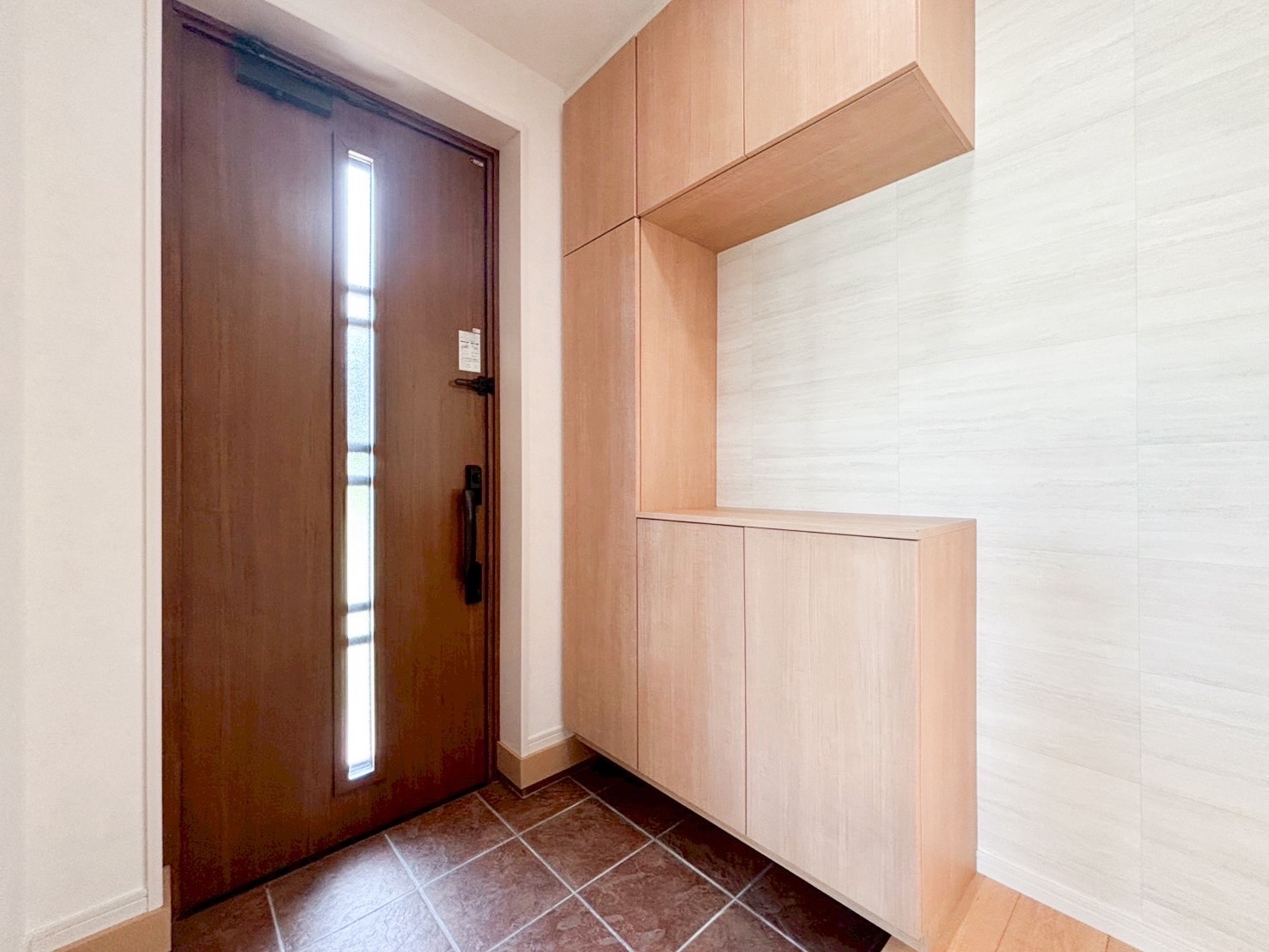 【天井・壁クロス張替えで綺麗になりました】 玄関ドアからも光が差し込み、いい運気も一緒に入ってきそうですね。 シューズBOXも大容量です。