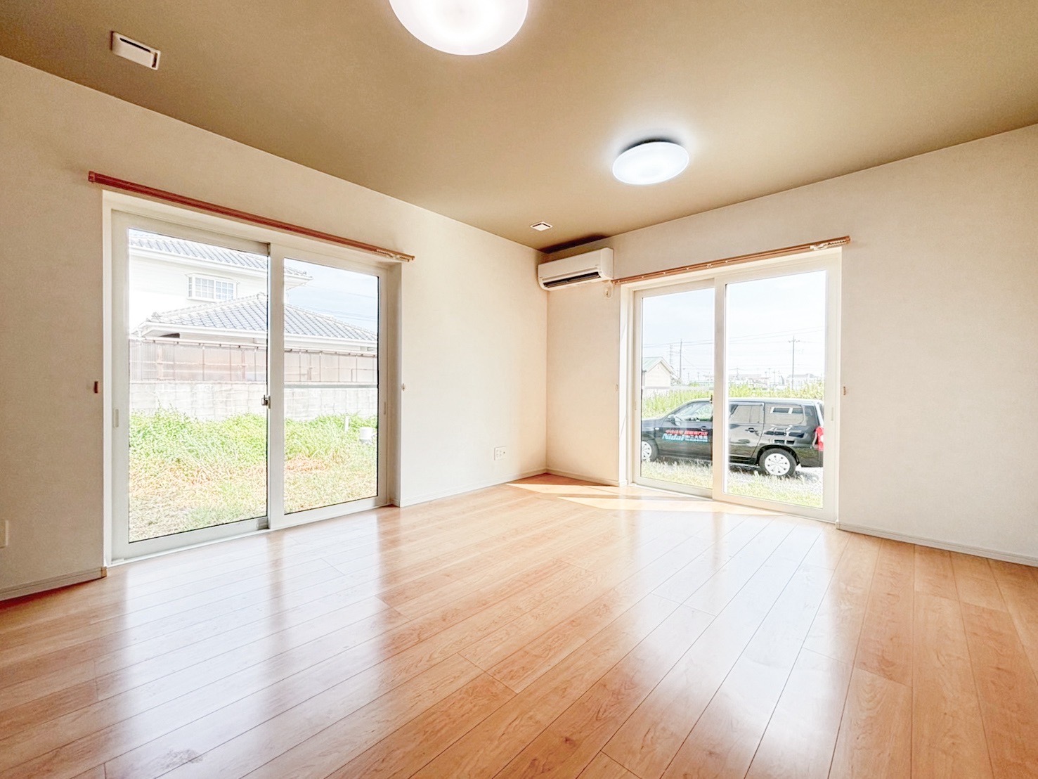 【天井・壁クロス張替えで綺麗になりました】 南東二方向に掃き出しの窓があるので、通風採光共に大変良好です。