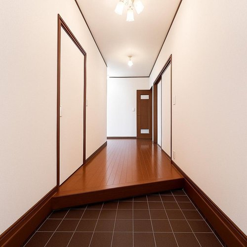 【リフォームしたCG画像です】玄関からの景色です。クロス張替え、ハウスクリーニングで綺麗にします。生活空間と個室が左右に分かれているので、プライベートがしっかり保たれます。
