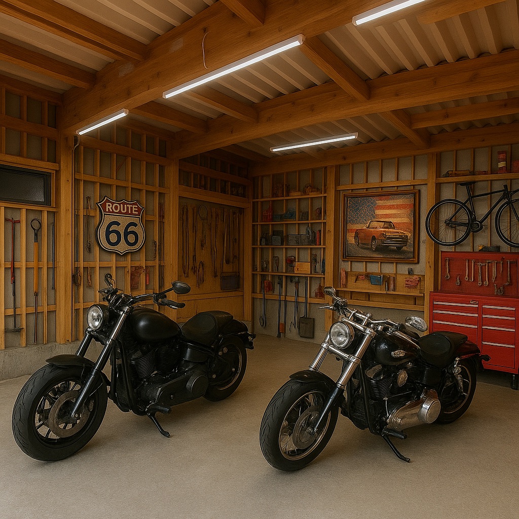 【ガレージのイメージ画像です】南側にガレージがあります。趣味のバイクや、自転車いじりなどにお使いいただけます。壁がそのまま整理棚となっていて便利にお使いいただけます。週末が楽しみになりますね。