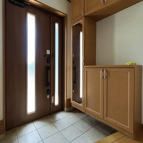 きれいにクリーニングしてお引渡しいたします。姿見も付いた靴箱は頭上にも収納があり家族全員分の靴もたっぷり収納できます。