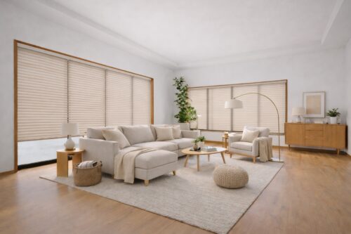 【家具を配置したイメージ画像です】 1階リビングに家具を配置したイメージです。これからクロス張替え、クッションフロア上張りで綺麗になります。※実際とは多少異なる場合があります。