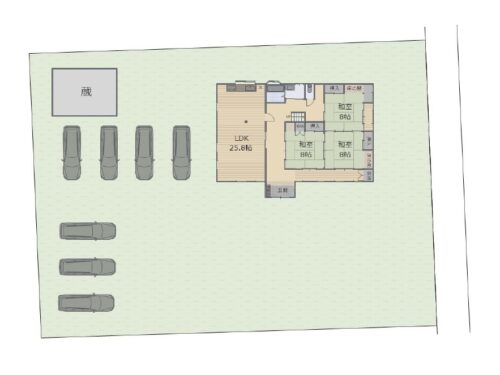【駐車場のイメージ図です】 外構工事でお庭を整備して7台駐車可能にします。