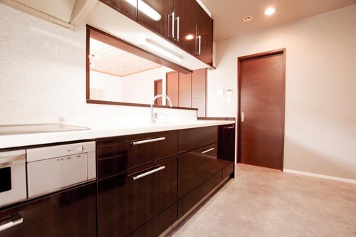 【リフォーム後】1階キッチンです。 床CF上張り、キッチンクリーニングで綺麗になりました。 対面式キッチンでリビングとのコミュニケーションが取りやすいキッチンです♪