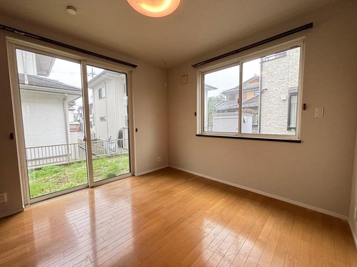 【リフォーム後】1階7.2帖の洋室です。 クロス張替えで綺麗になりました。 南向きに掃き出し窓があるので明るい光が差し込むお部屋になります。部屋干しポールが付いてとても便利です。