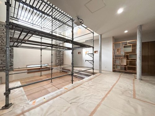 【リフォーム中】 これから一部クロス張替え、クリーニングで綺麗になります。 吹抜けのリビングイン階段でいつも家族を近くに感じられますね。