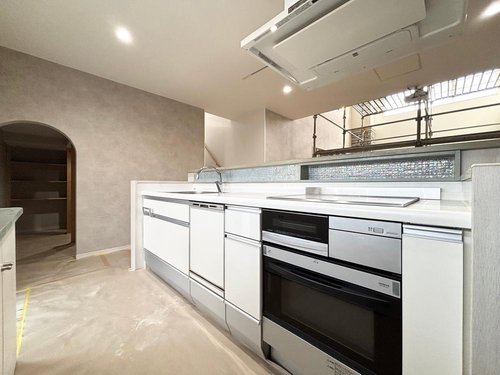 【リフォーム中】 一部クロス張替え、クリーニングで綺麗になりました。 おしゃれなアイランドキッチンにはオーブンも付いています♪ お料理が楽しくなるキッチンですね。