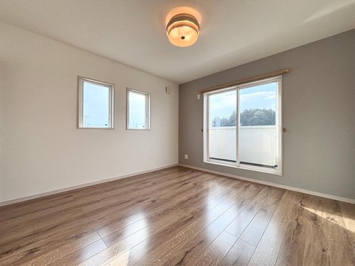 【リフォーム完了】 一部クロス張替え、クリーニングで綺麗になりました。 2階8帖洋室です。 南側に掃き出し窓がありバルコニーに出入りできるお部屋です。