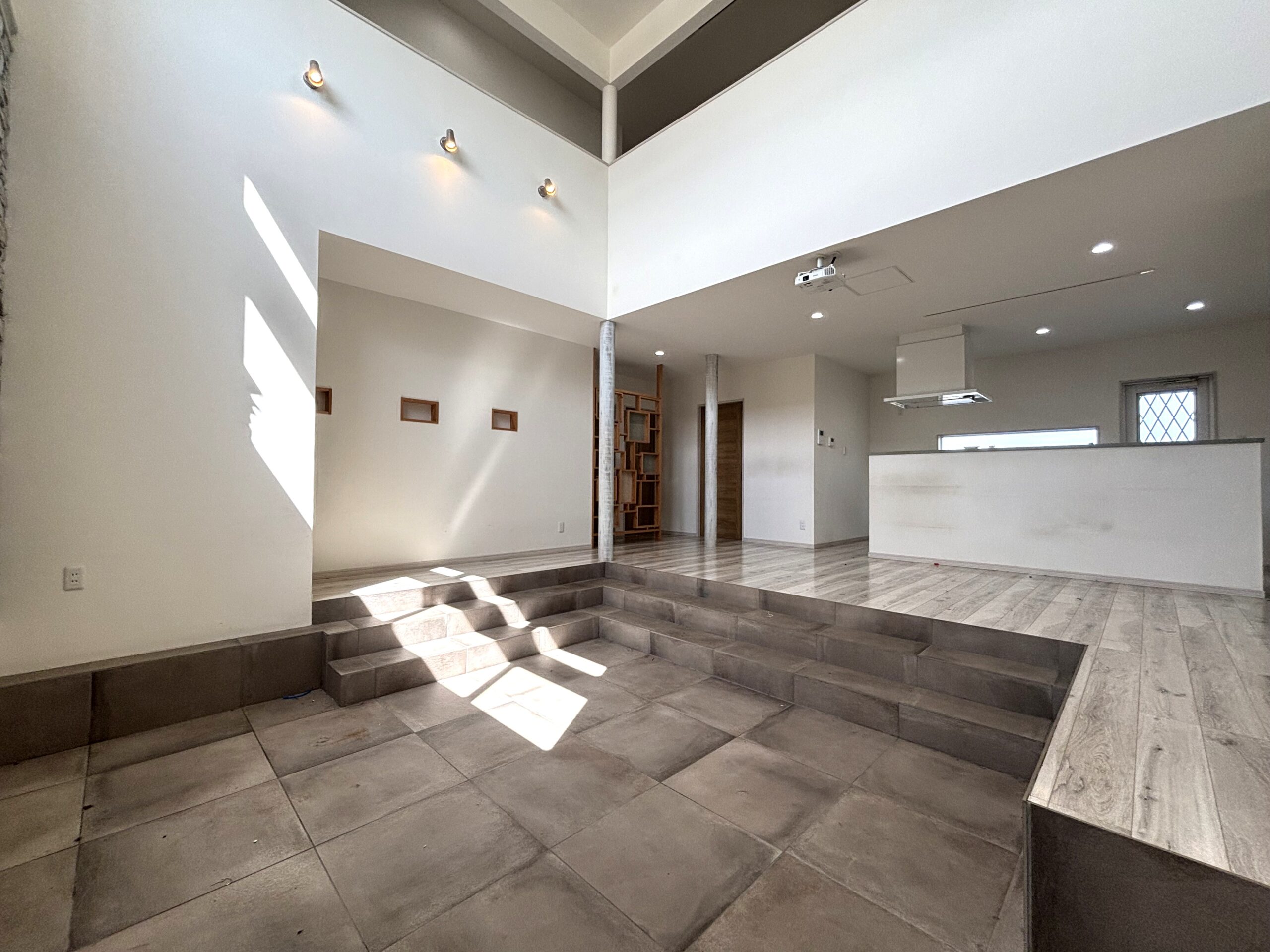 【リフォーム前】 これから一部クロス張替え、クリーニングで綺麗になります。 吹抜けのリビングイン階段でいつも家族を近くに感じられますね。