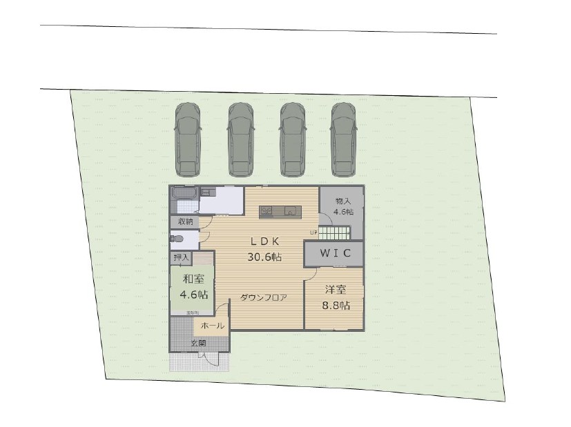 ◯車も並列で4台駐車可能
