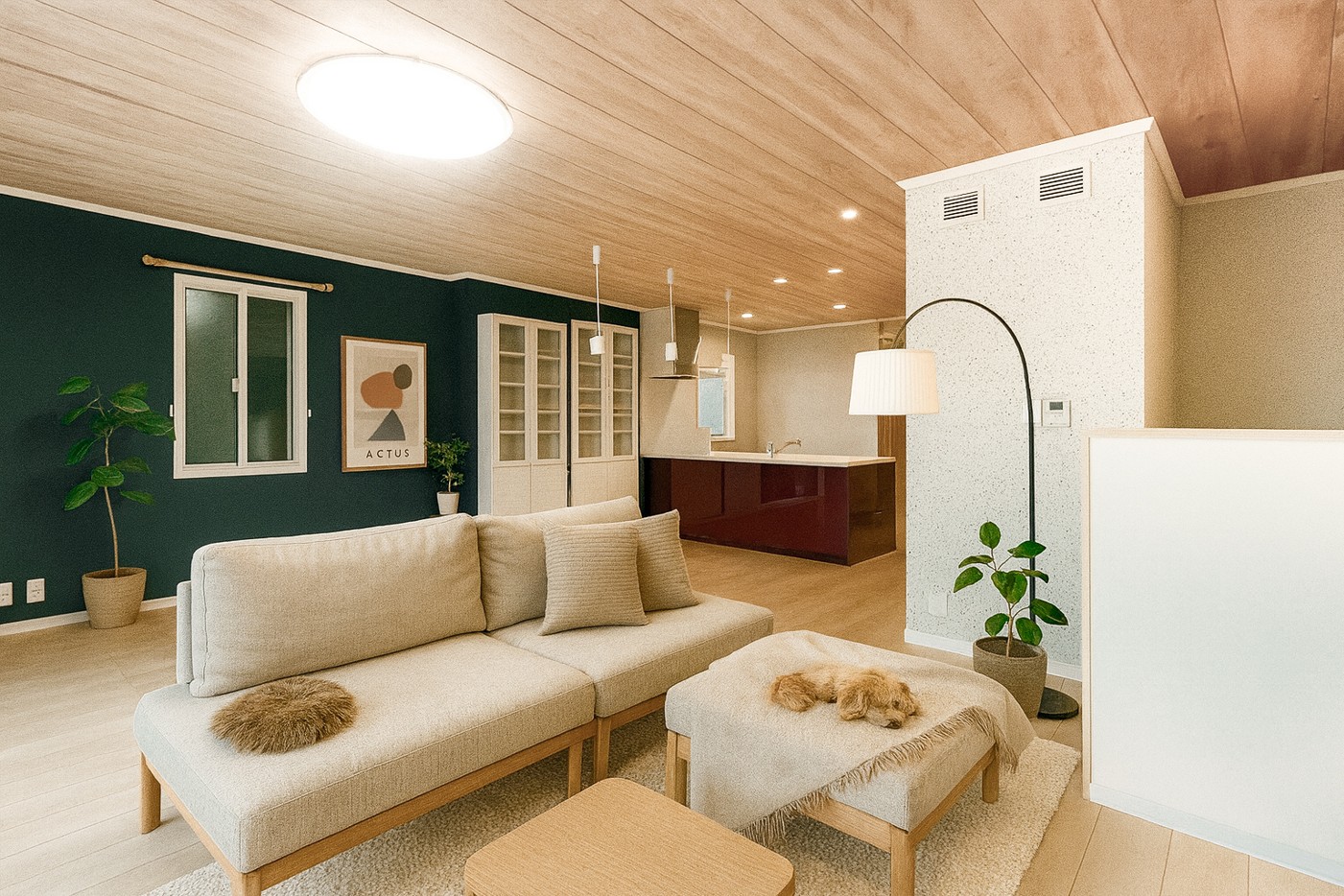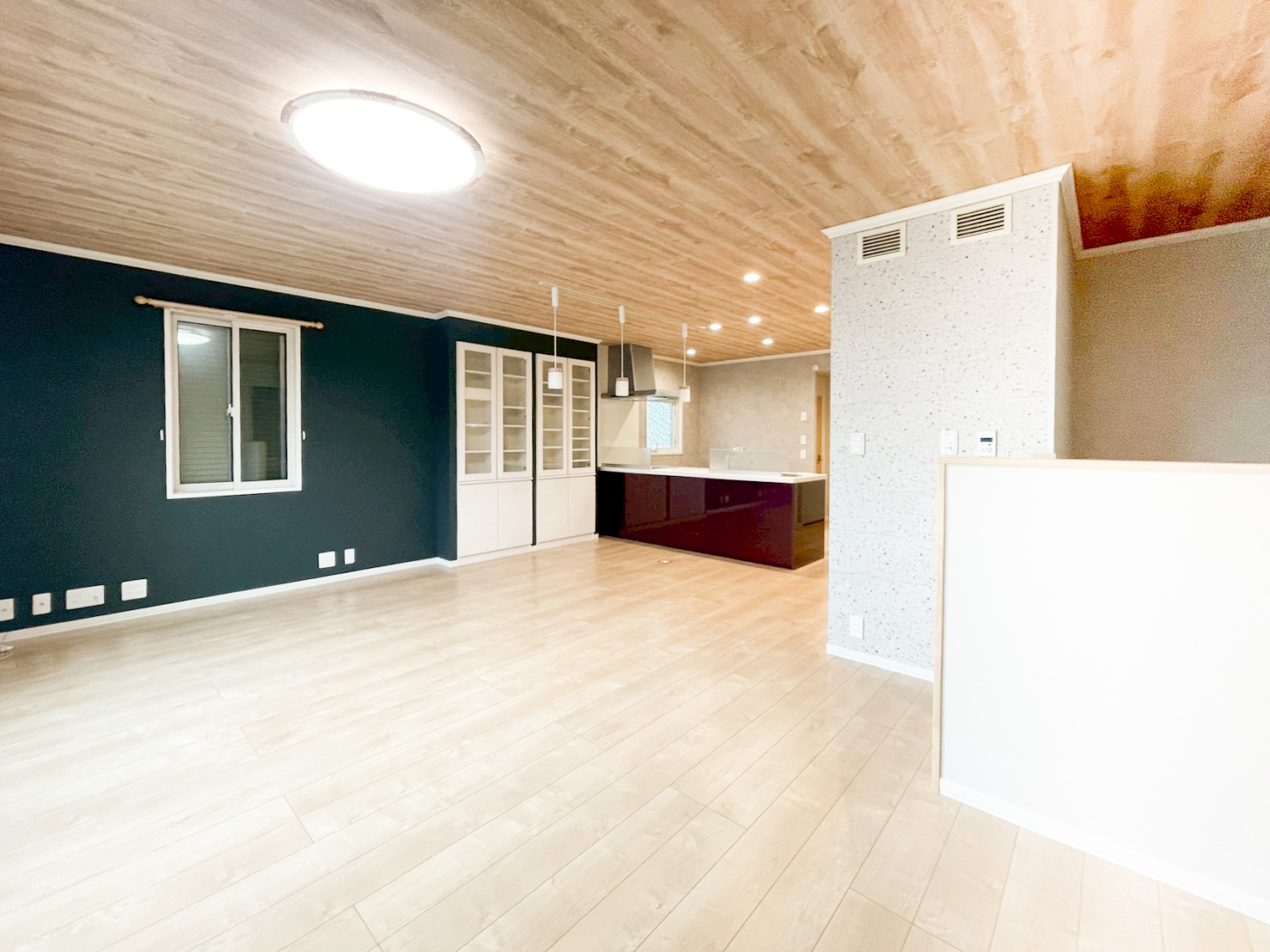 【リフォーム中】 クロス張替えは完了、これからクリーニングしてお引渡し致します。 アクセントクロスが効いたおしゃれなリビングです。 2階LDKは広々20帖!作り付けの食器棚も付いて、お部屋を広々使えます!
