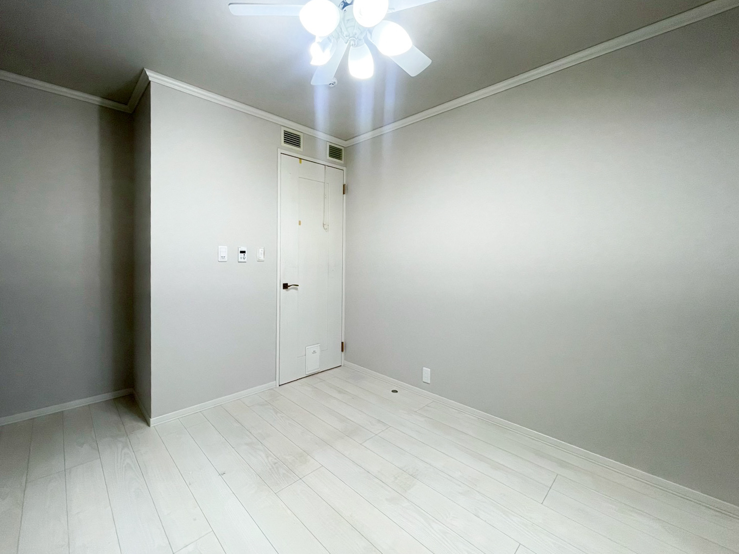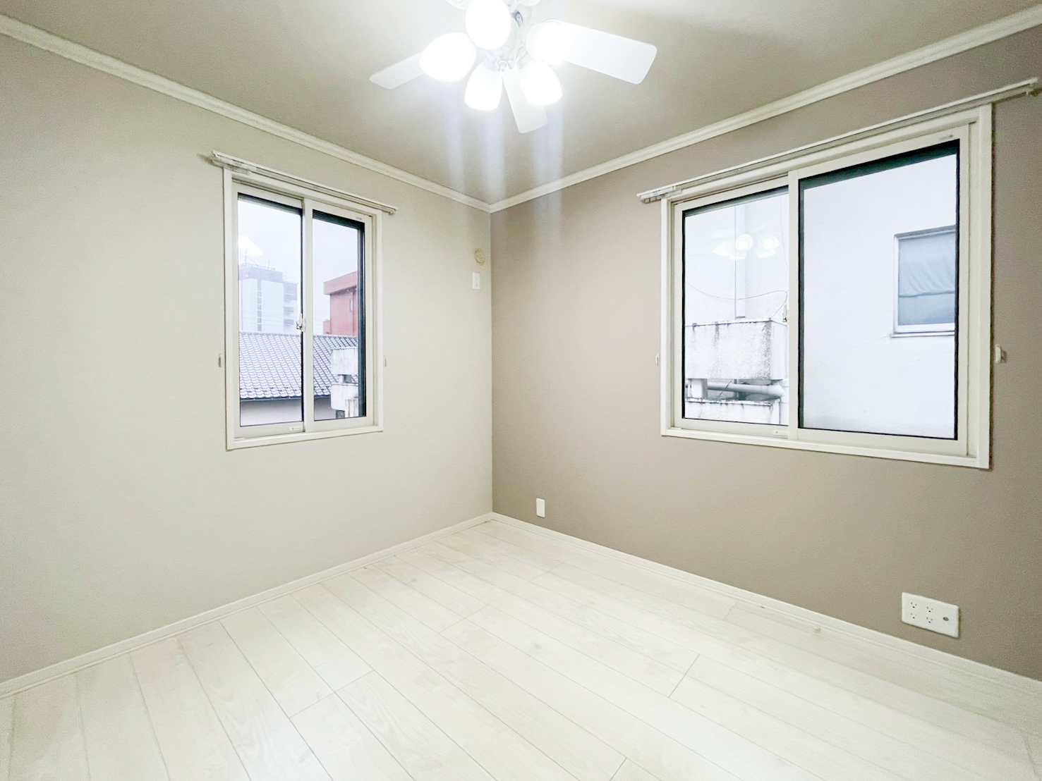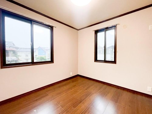 【リフォーム中】 クロス張替えは完了、これからクリーニングしてお引渡し致します。 2階4.5帖の洋室です。南と北でフローリングの色を変えています。子供部屋にぴったりですね。