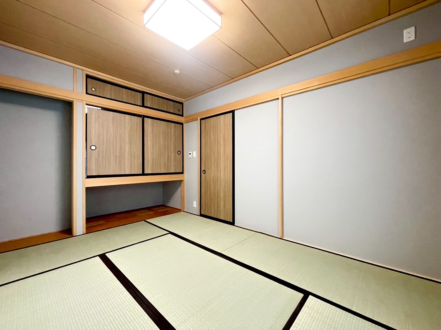 【リフォーム後】 畳表替え、襖・障子張替え、クロス張替えしました。1階和室です。客間や、ご夫婦の寝室としてもご使用いただけます。
