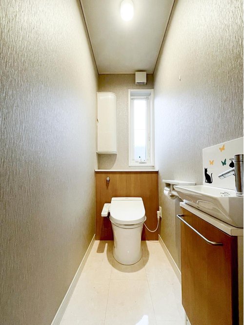 【リフォーム前】 クロス張替え、クリーニングしてお引渡し致します。手洗い場も付いて清潔です。 物入も沢山で、ペーパー類やお掃除道具など整理整頓できます。