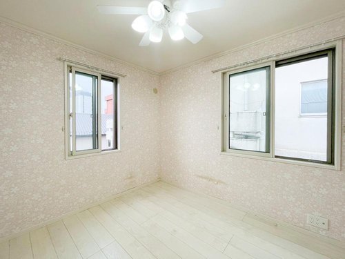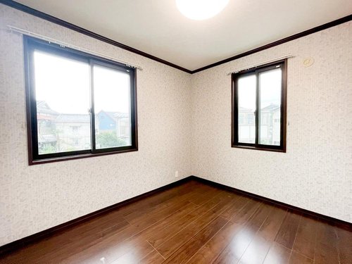 【リフォーム前】 クロス張替え、クリーニングしてお引渡し致します。2階4.5帖の洋室です。南と北でフローリングの色を変えています。子供部屋にぴったりですね。