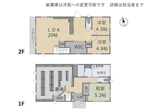 書庫は洋室への変更も可能です。詳細は担当者までお気軽にお問合せください。お待ちしております。