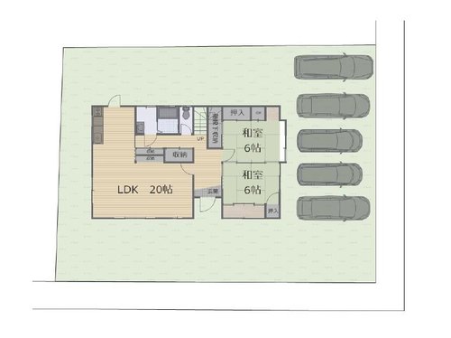 【駐車場配置イメージ図】 駐車場敷地図になります。並列で5台駐車可能です。