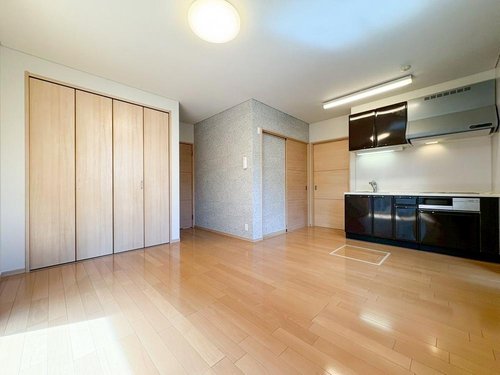 【クロス張替え・クッションフロア上張り・ハウスクリーニングで綺麗になりました】1階LDKです。キッチン裏には大容量のパントリーがあるので、冷蔵庫など生活感は見えない工夫がいいですね。