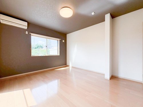 【クロス張替え・クッションフロア上張り・ハウスクリーニングで綺麗になりました】1階7.2帖の洋室です。アクセントクロスで引き締まった印象です。