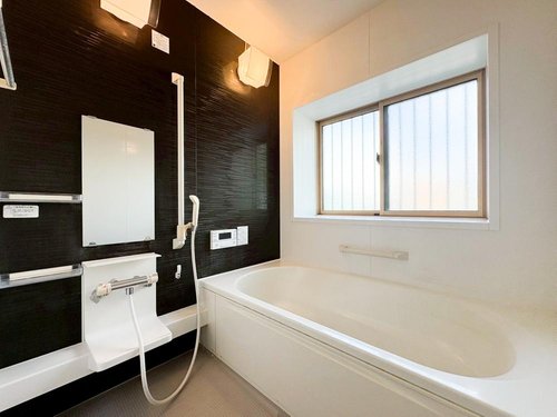 【ハウスクリーニングで綺麗になりました】1階浴室です。キッチンと同系色で揃えた浴室です。大き目の換気窓でカビ対策もばっちりです。