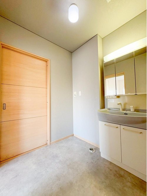 【クロス張替え・クッションフロア上張り・ハウスクリーニングで綺麗になりました】1階洗面所です。クッションフロアは汚れや水に強いものを使用しました。