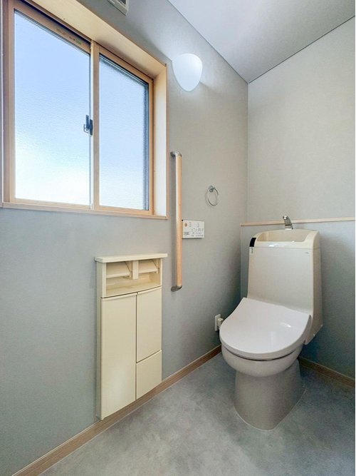 【クロス張替え・クッションフロア上張り・ハウスクリーニングで綺麗になりました】2階トイレです。1階のトイレとクロスの色を変えました。爽やかな空間になりました。