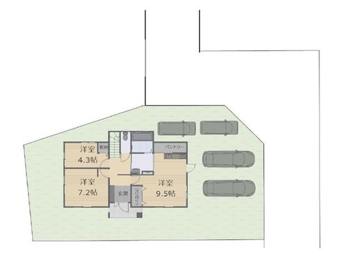 【駐車場のイメージ図です】 大きなワゴン車を含め4台駐車可能です。2世帯には嬉しいですよね。