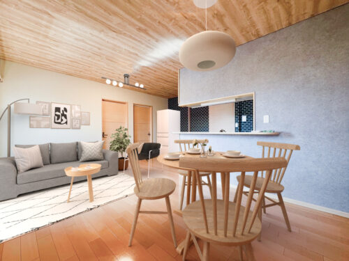 【家具配置イメージ画像】 2階LDKに家具等を設置した際のイメージ写真です(実際には家具・家電等は設置されていません)。 家族が自然と集まり会話の弾むリビングになりそうですね。