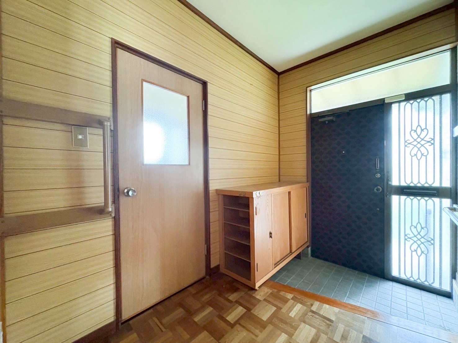【これからクリーニングして綺麗になります】 光が差し込む明るい玄関です。 シューズボックスもあるので家族の靴を収納してスッキリ使えます。