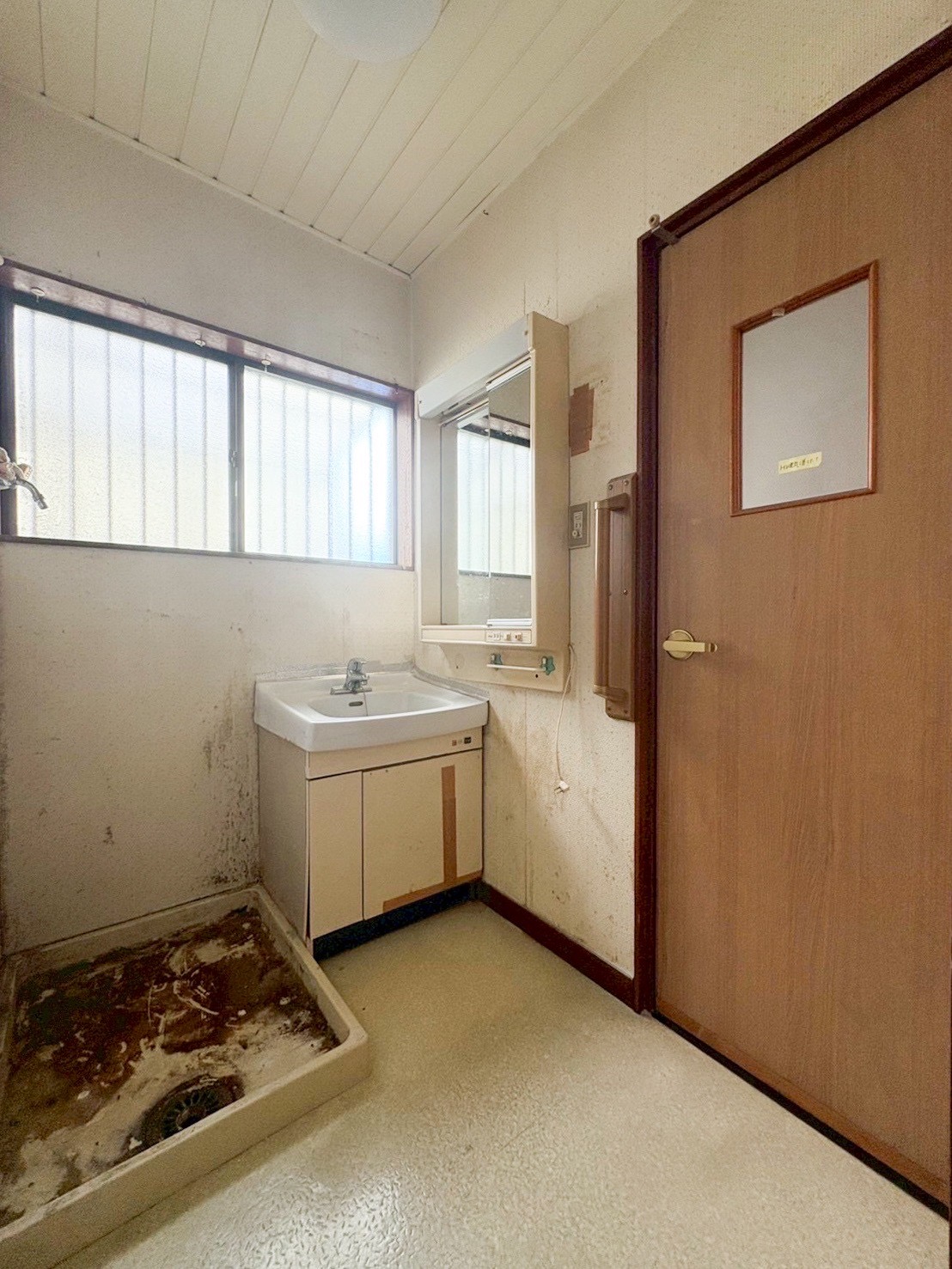 【これからクリーニングして綺麗になります】 窓がついているので、換気もできる明るい洗面室です。