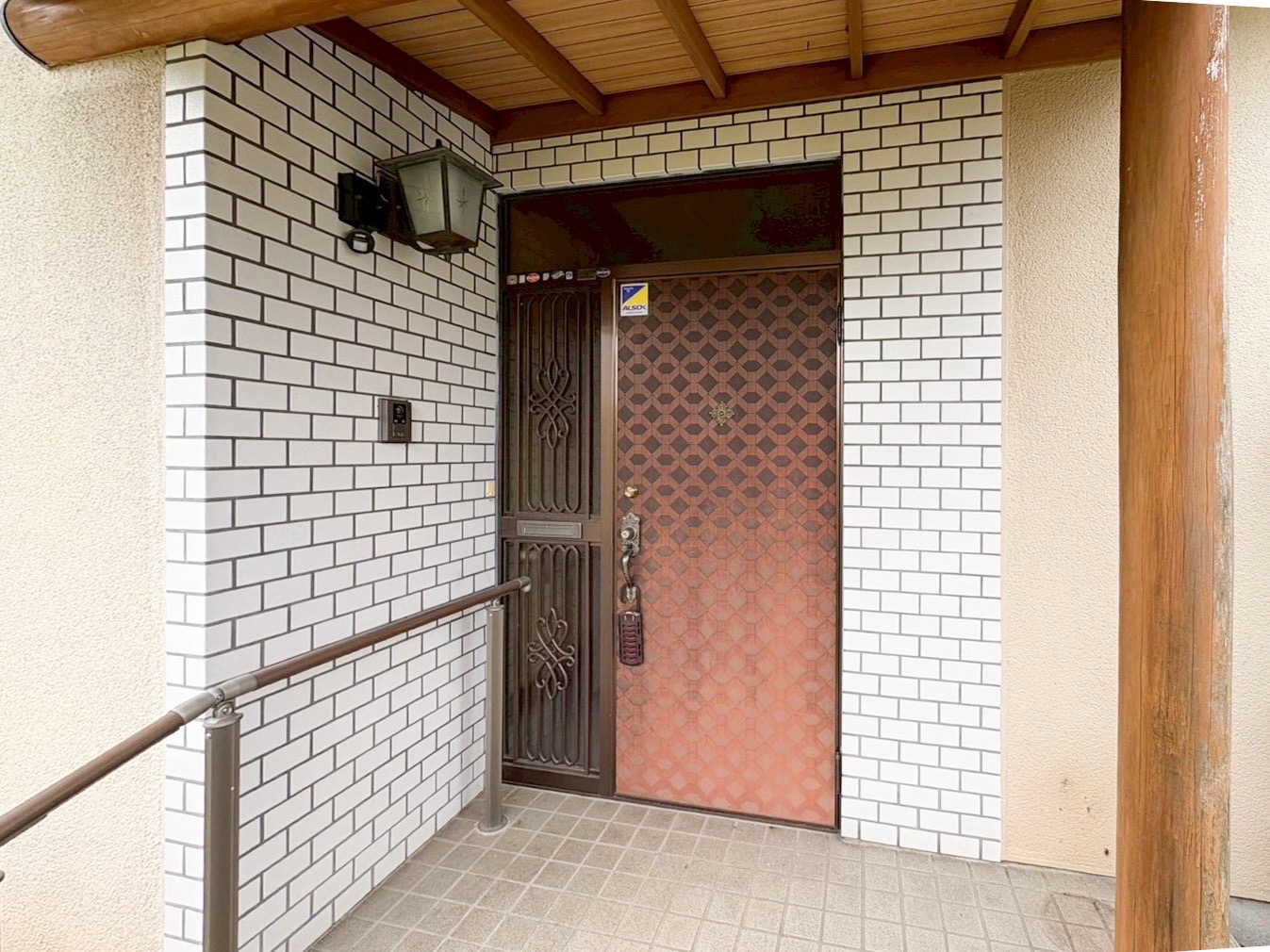 【これからクリーニングして綺麗になります】 手すり付きの玄関で祖父母や友人、お子様など幅広い年代の方が安全に出入りできます。
