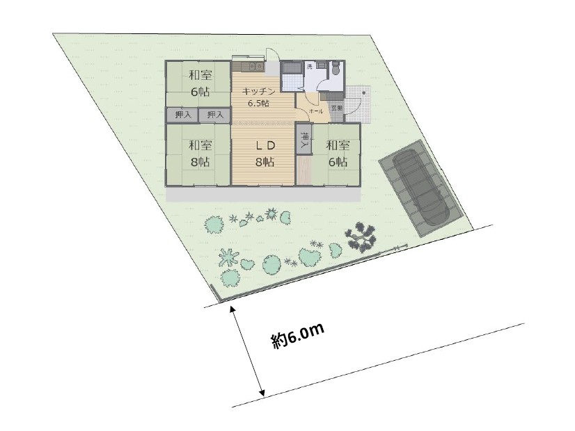○前面道路幅6mなので車の運転が苦手な方にも安心の広さがあります