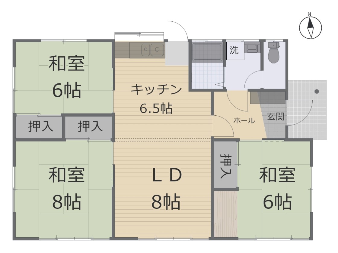 構造・間取り 木造瓦ぶき平屋建 / 3LDK