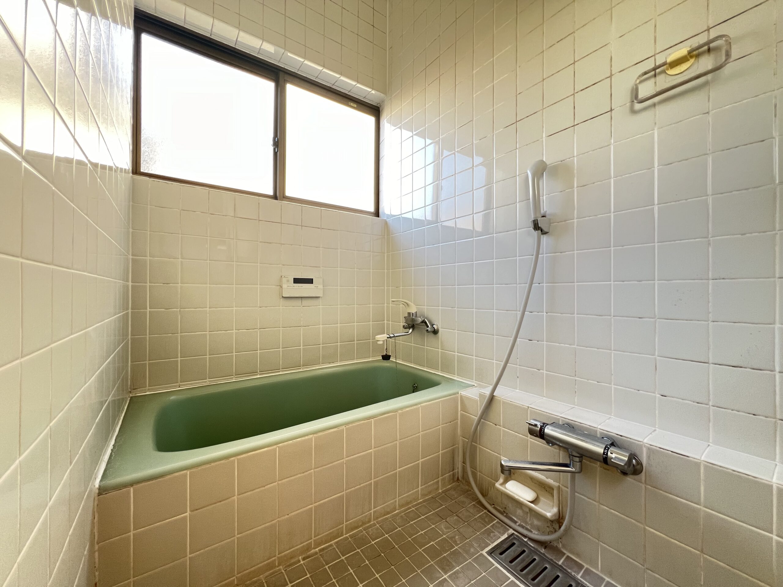 タイル張りのお風呂です。綺麗にクリーニングしてお引渡し致します。リフォームのご相談も承ります。お気軽にご相談下さい。