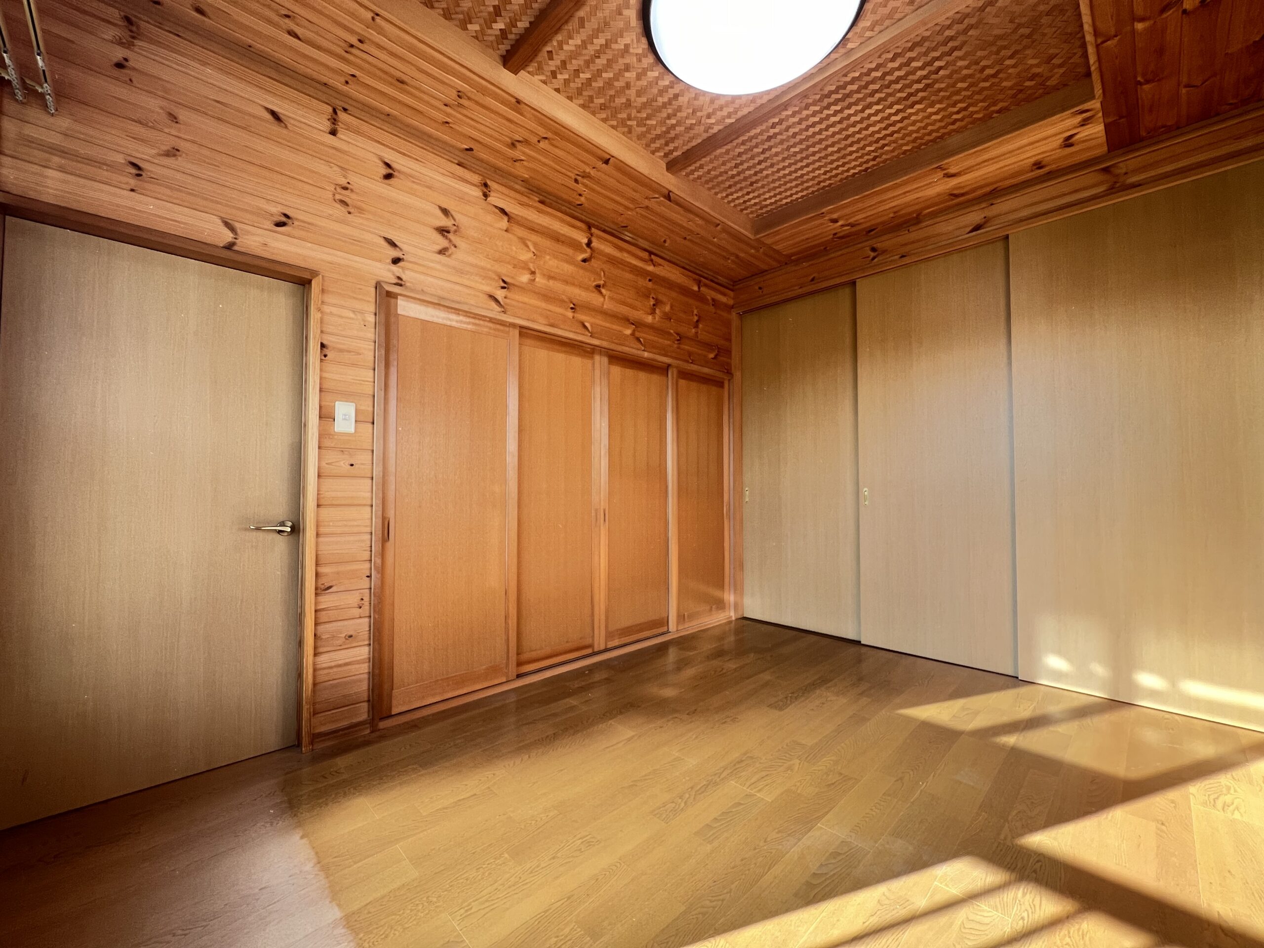 2階和室です。板張りの壁が古さを感じさせません。お布団派のご夫婦の寝室にいいですね。子供部屋としても使えます。