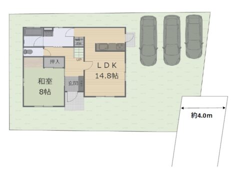 【駐車場イメージ図】 駐車場の車配置イメージ図です。 並列で3台駐車可能です。