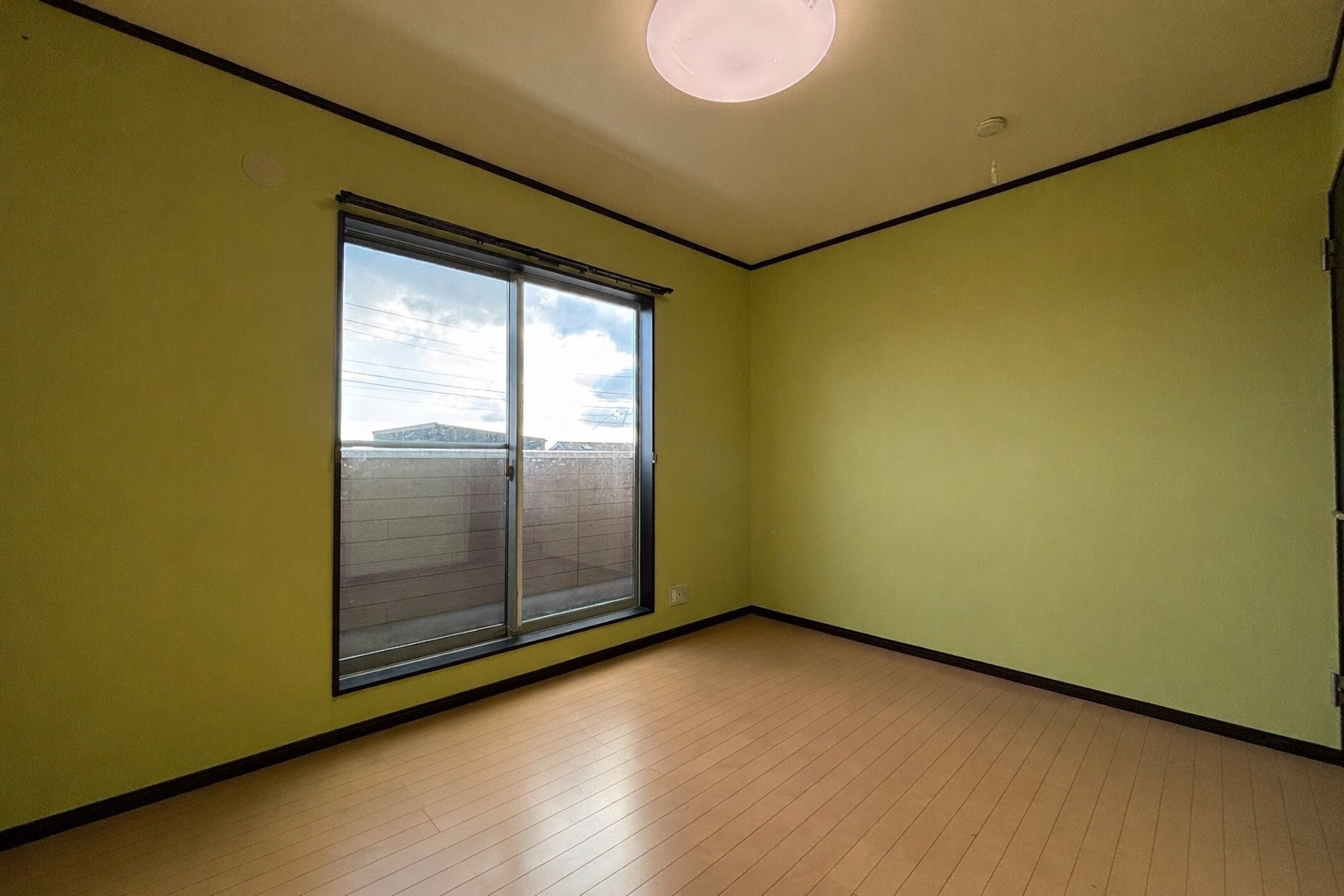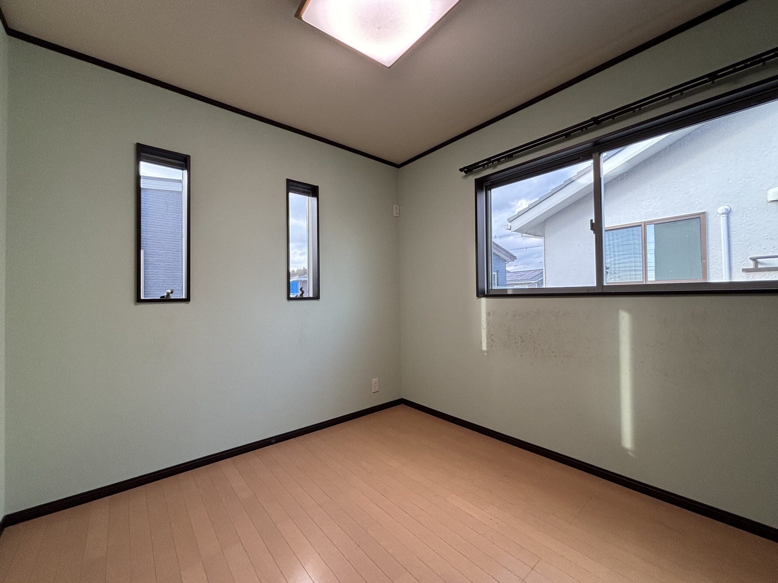 【リフォーム前】 クロス張替え、ハウスクリーニングで綺麗にします。2階5.2帖×5.2帖の洋室です。こちらは南側になります。引き戸で繋がっているので、お子様の成長に合わせてお使いいただけます。