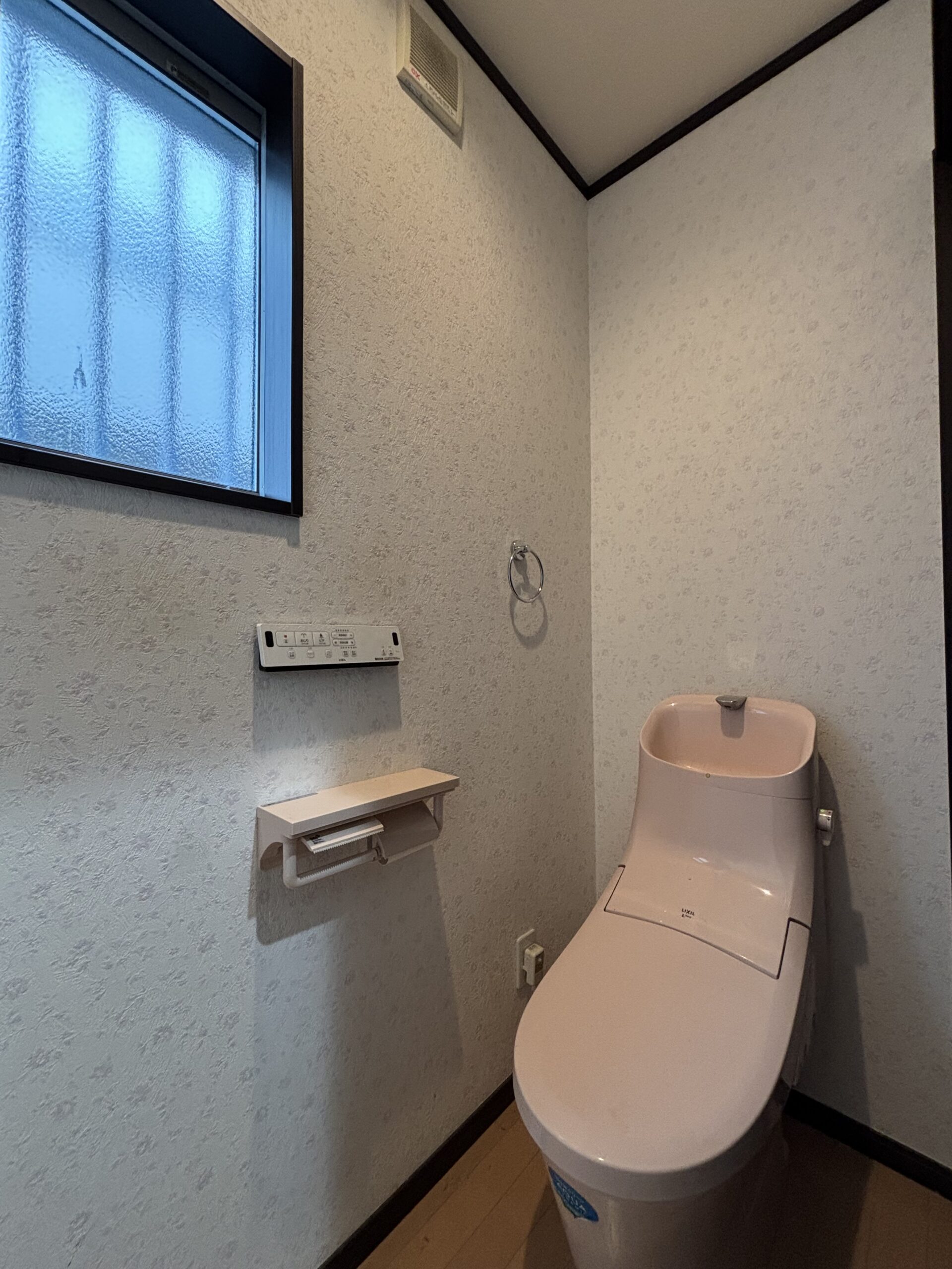 【リフォーム前】 クロス張替え、ハウスクリーニングで綺麗にします。築9年なのでまだまだ新しく清潔な温水洗浄便座です。リフォームのご相談もお気軽にどうぞ。