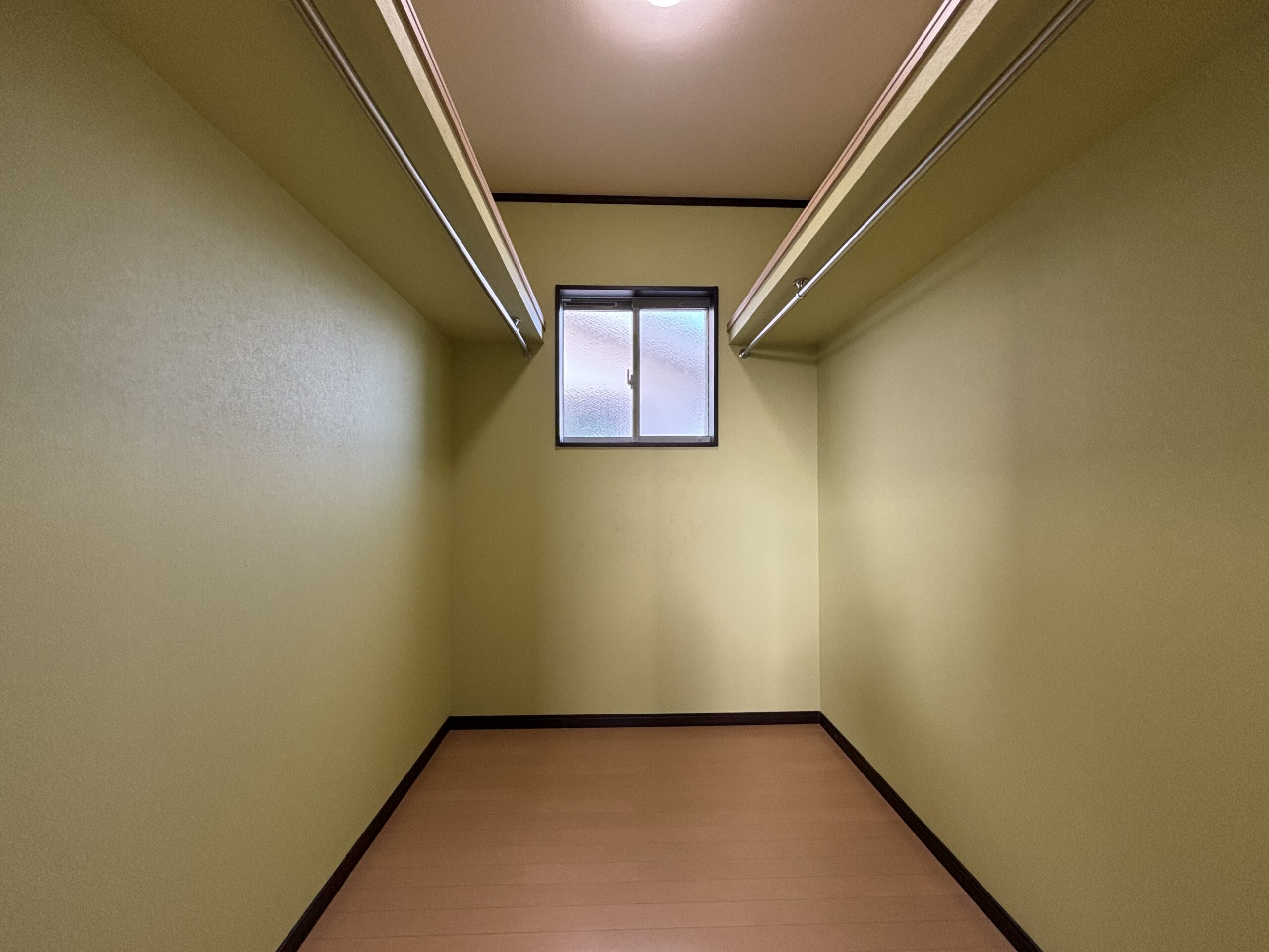 【リフォーム前】 クロス張替え、ハウスクリーニングで綺麗にします。2階6.5帖の洋室に付いているWICです。両サイドにハンガーパイプが付いて、洋服はご夫婦で分けて収納できますね。