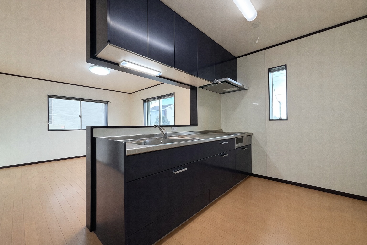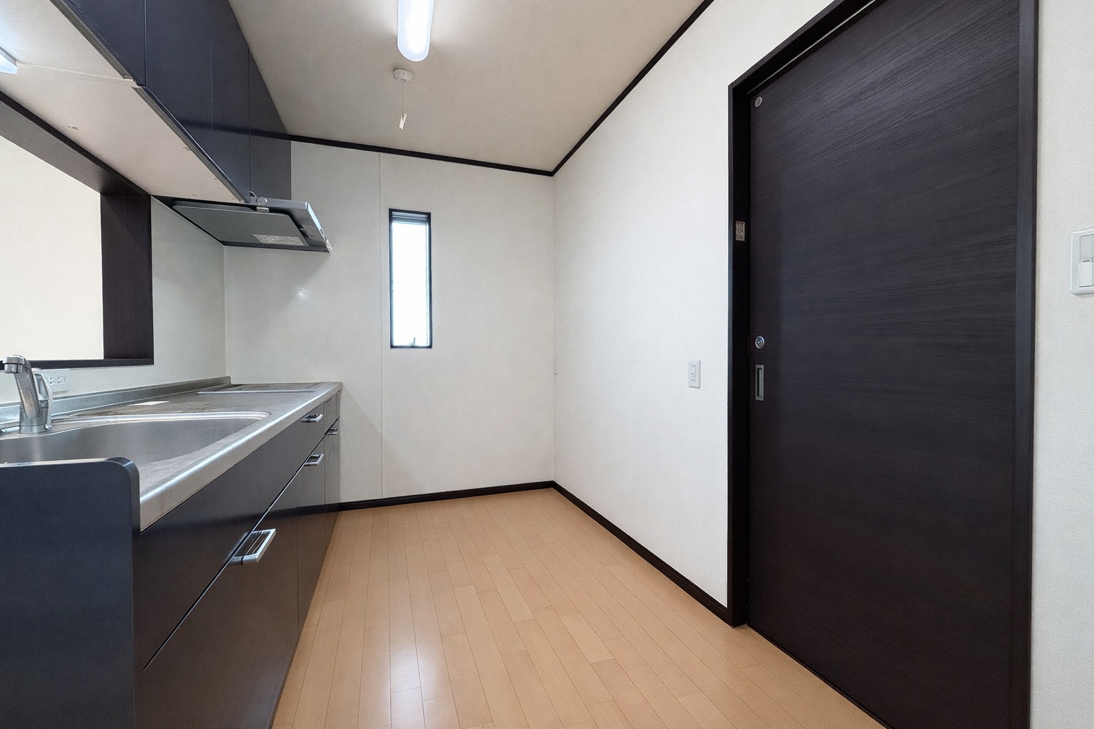 【リフォーム前】 クロス張替え、ハウスクリーニングで綺麗にします。安心安全のIHコンロが付いています。カウンターキッチン裏に洗面所に繋がる引き戸が付いているので、家事動線がとてもいいです。