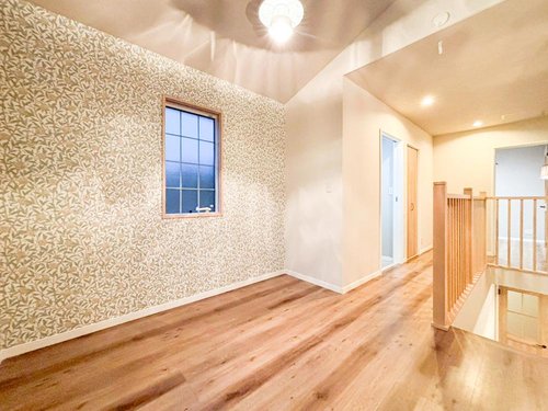 【リフォーム完了】 クロス張替え、クリーニングが完了し、きれいになりました。 2階ホールも木目調で心地いい明るい空間が広がります。