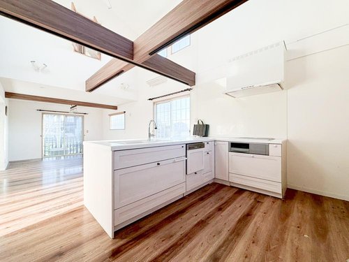 【リフォーム前】 これからクロス張替え、クリーニングできれいになります。 L字型の対面式キッチンで生活動線がスムーズで使いやすいレイアウトになっています。
