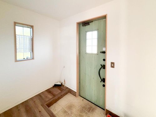 【リフォーム前】 これからクロス張替え、クリーニングできれいになります。 深いグリーンの屋根にあわせたドアでアメリカンな雰囲気がいいですね。