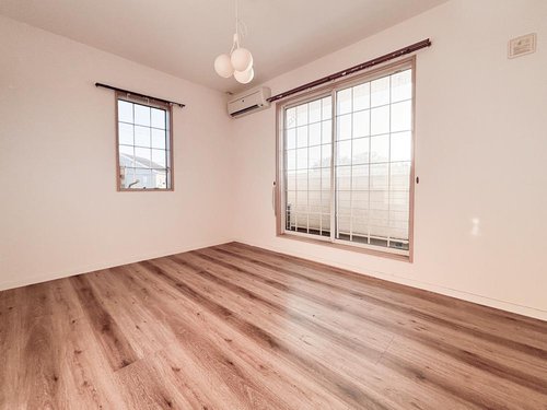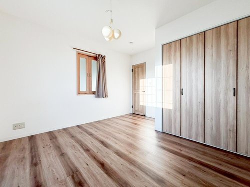 【リフォーム前】 これからクロス張替え、クリーニングできれいになります。 2階4.5帖洋室です。 木目調で心地いい空間ですね。