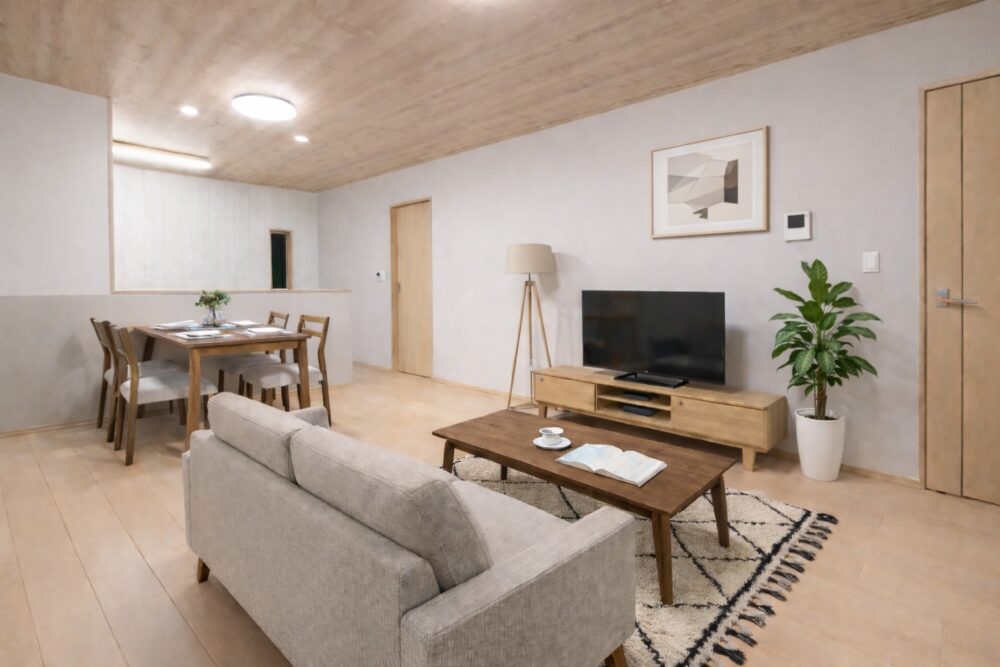 【リフォーム完了】 クロス張替え、ハウスクリーニングして綺麗になりました。シンプルな内装でインテリアも合わせやすい。将来のライフスタイル変更にも対応しやすい空間になっています。