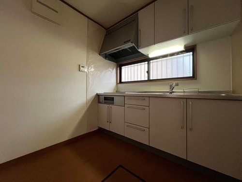 【リフォーム前】 クロス張替え、照明取付、クリーニング等をこれから行ってきれいになります。 北東の窓からの柔らかな朝日で快適に調理ができるキッチンです。