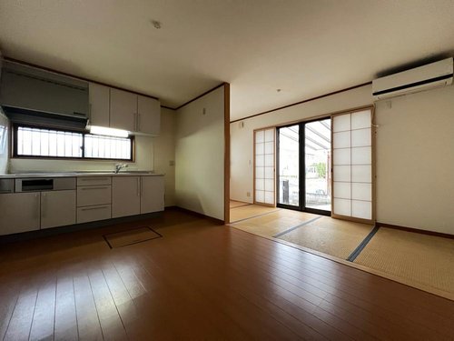 【リフォーム前】 クロス張替え、照明取付、クリーニング等をこれから行ってきれいになります。 キッチンから和室まで見渡せる安心の空間設計ですね。